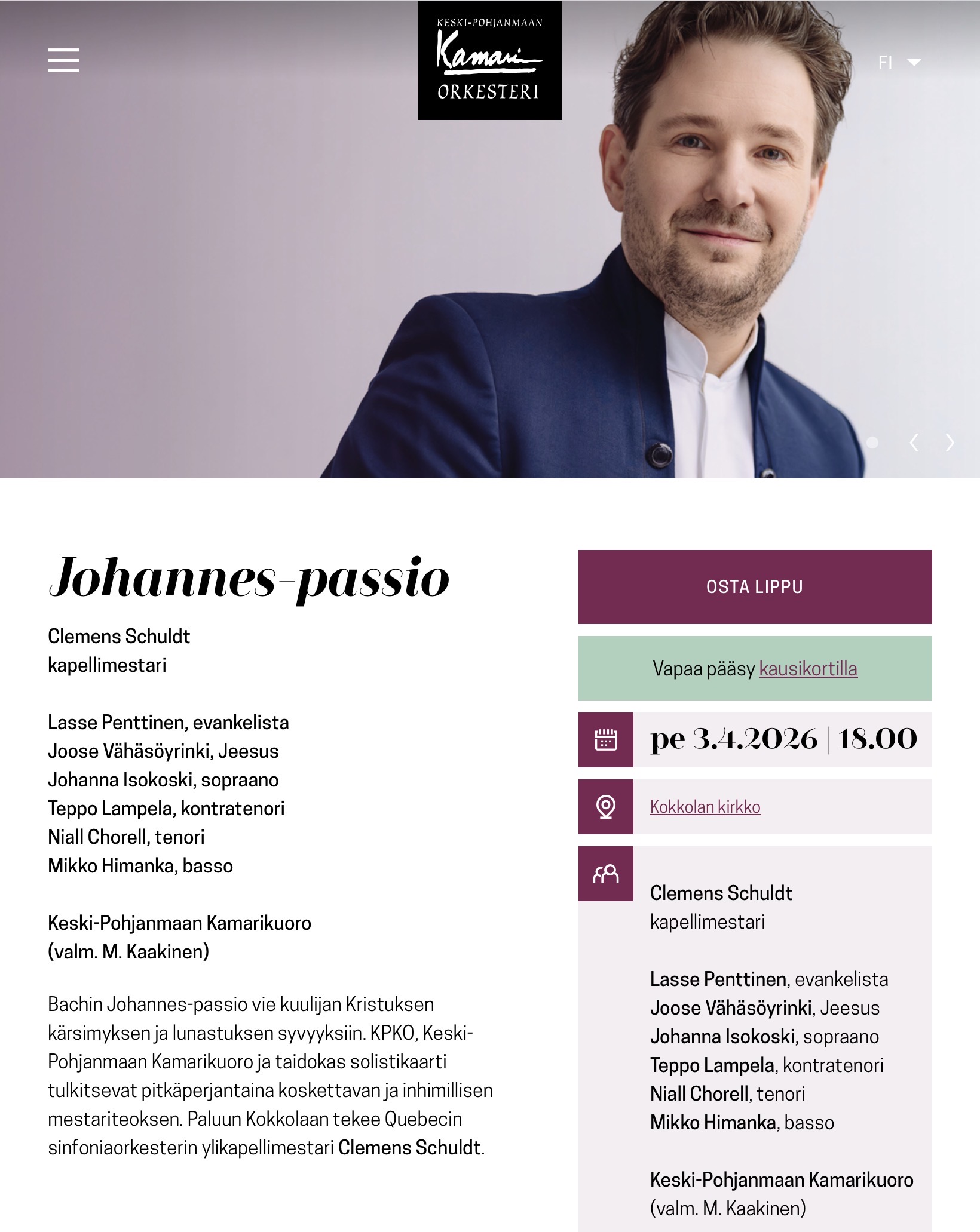 Nyt siihen on oiva tilaisuus: tule mukaan Keski-Pohjanmaan Kamarikuoron hilpeään joukkoon! Uudet laulajat ovat aina tervetulleita kuoroon, jossa tinkimätön ja sitoutunut harjoittelu yhdistyy rennon letkeään yhdessäoloon ja aivan omintakeiseen ”sumeaan logiikkaan”.